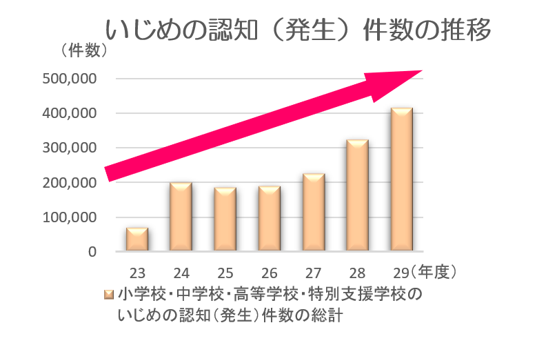 近年お子様のいじめ問題のトラブルが多発しており、イジメ件数は6年間で約6倍と急激に増加しています!
